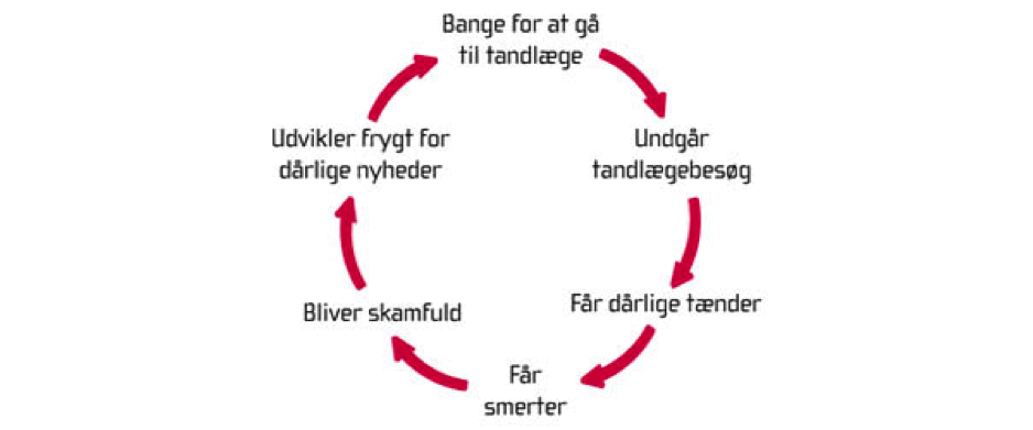 Har man ikke været til tandlæge i lang tid, bliver man yderligere bange for at få dårlige nyheder, fx at man har mange huller, og at det vil koste mange penge at få tænderne lavet.